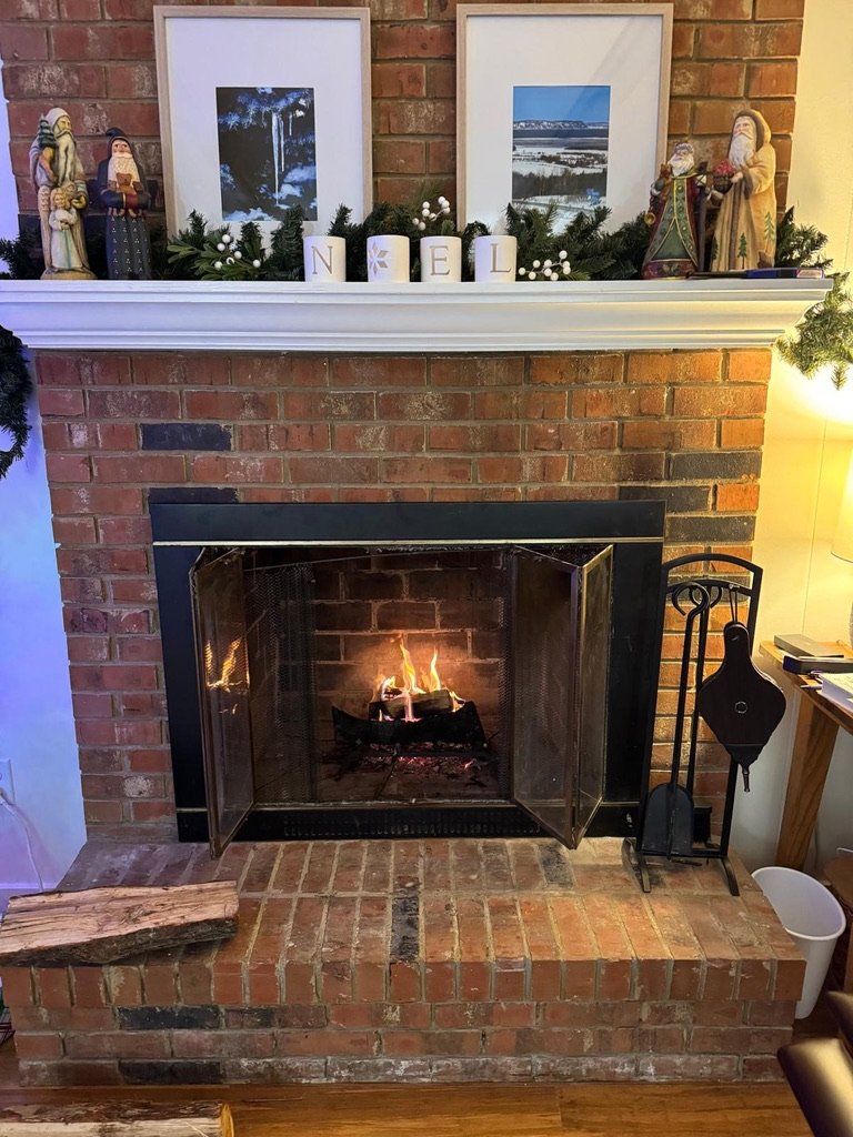 There is just something about a fireplace where you have to carry in wood and can poke the fire that just warms more than my body!
